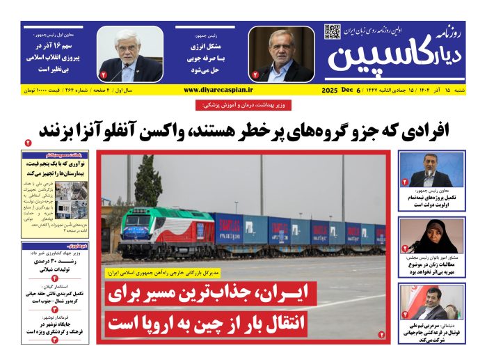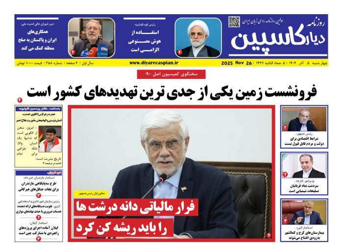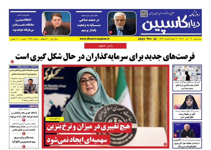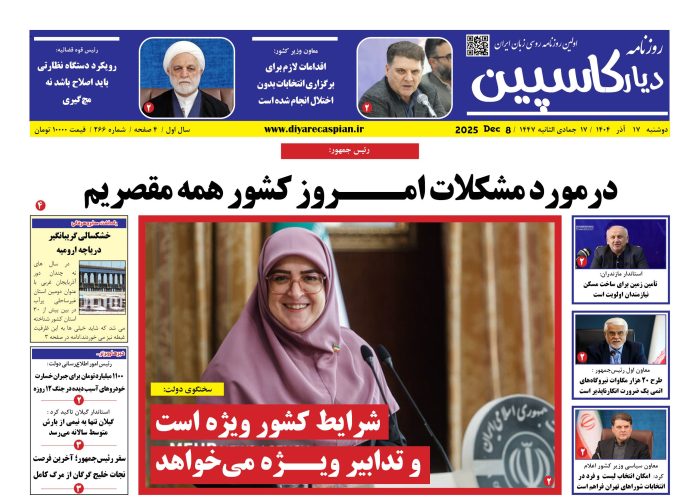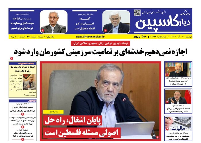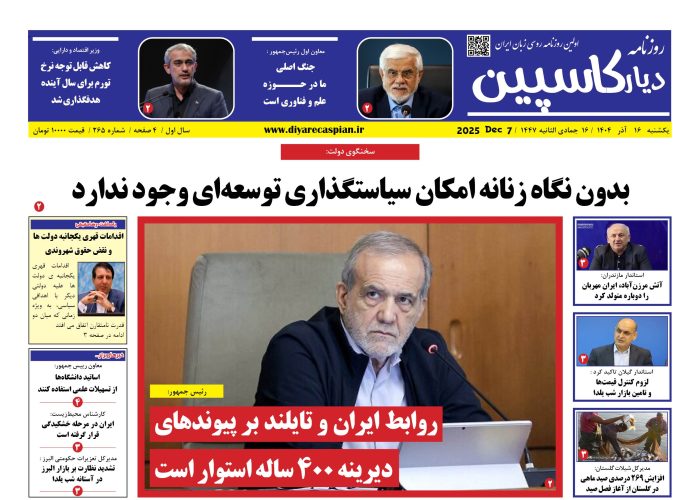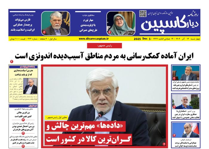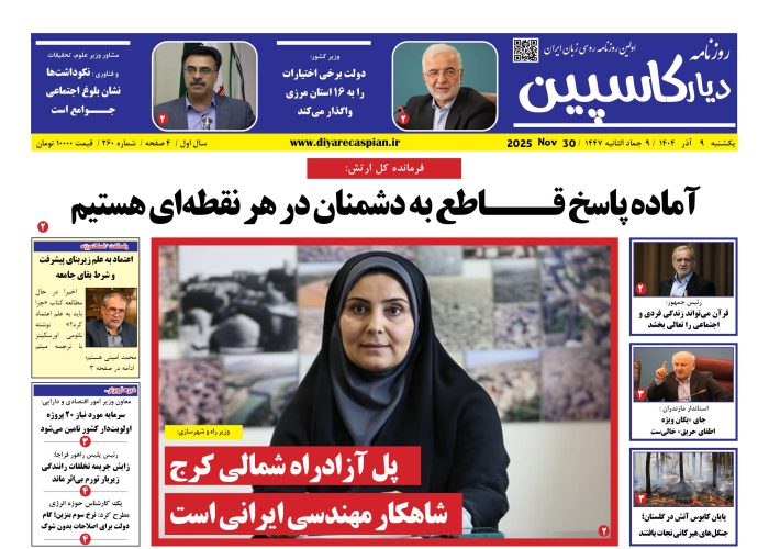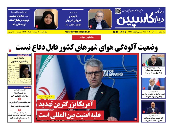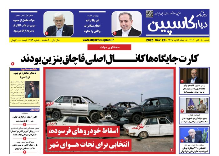 روزنامه دیار کاسپین شماره 265– یکشنبه 16 آذر 1404 روزنامه دیار کاسپین شماره 264– شنبه 15 آذر 1404 روزنامه دیار کاسپین شماره 263– چهارشنبه 12 آذر 1404 روزنامه دیار کاسپین شماره 262– سه شنبه 11آذر 1404 روزنامه دیار کاسپین شماره 261– دوشنبه 10 آذر 1404 روزنامه دیار کاسپین شماره 260– یکشنبه 9 آذر 1404 روزنامه دیار کاسپین شماره 259– شنبه 8 آذر 1404 روزنامه دیار کاسپین شماره 258 – چهارشنبه 5 آذر 1404 روزنامه دیار کاسپین شماره 257– سه شنبه 4 آذر 1404 بارگذاری بیشتر
